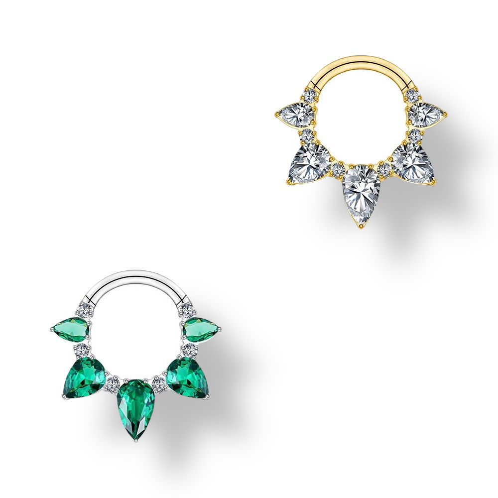 clicker de titaneo con apliques de circonia verde esmeralda para Daith y Septum
